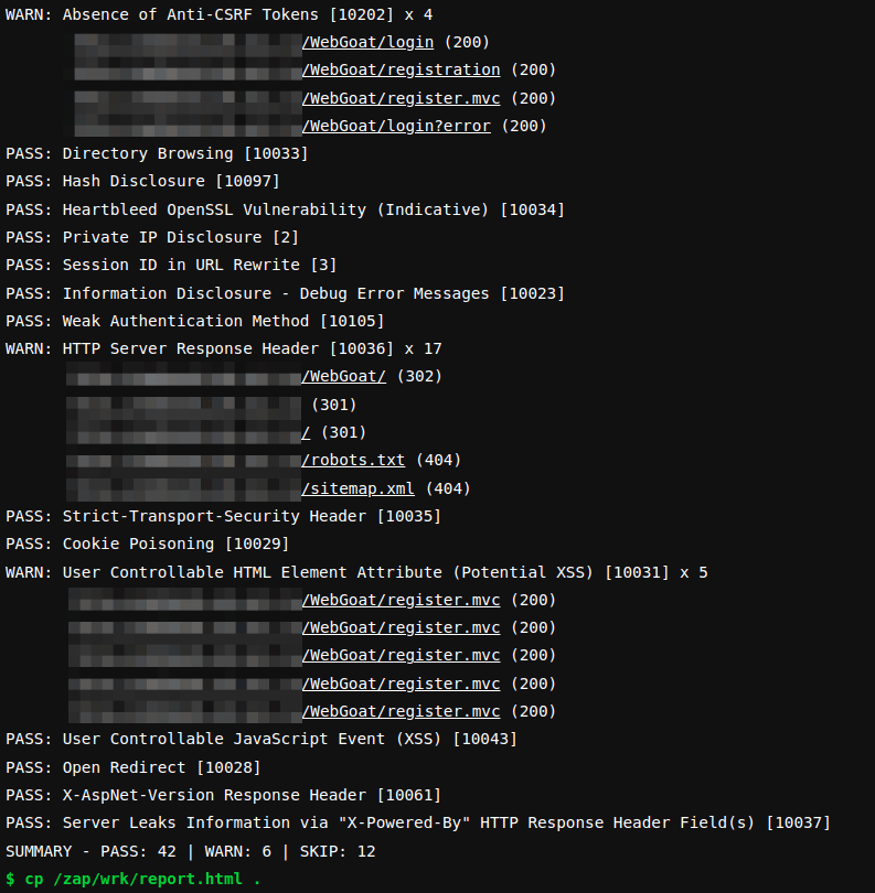 данная утилита уже делает вывод информации о проведенных тестах и найденных уязвимостях внутри job, поэтому не нужно делать дополнительную обработку;