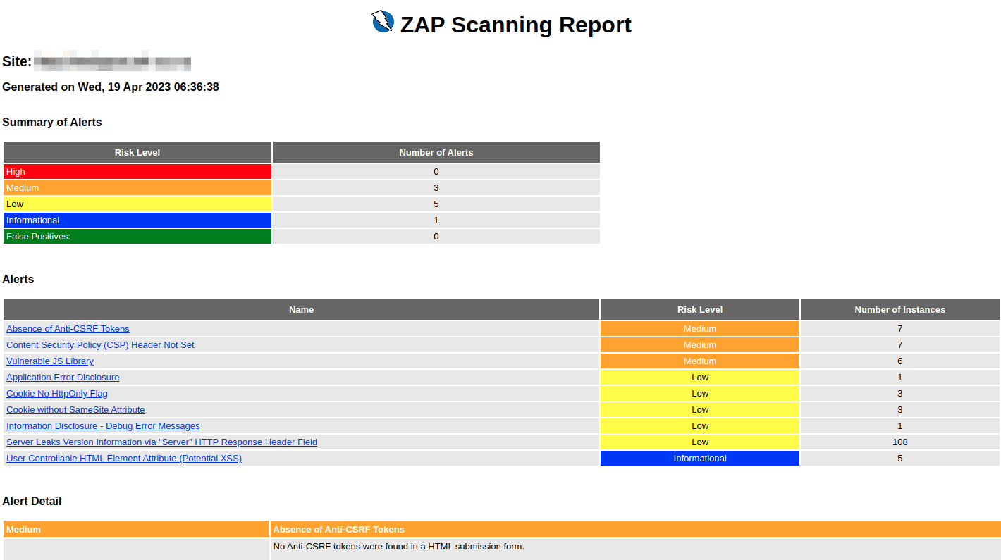 Ниже показано, как выглядит html-отчет. Здесь есть вывод количества уязвимостей по уровням, далее — перечисление всех уязвимостей с выводом количества повторений этих уязвимостей и детальная информация по каждой уязвимости: описание, местоположение, ссылки на подробное описание в различных известных перечнях уязвимостей, типа CWE.